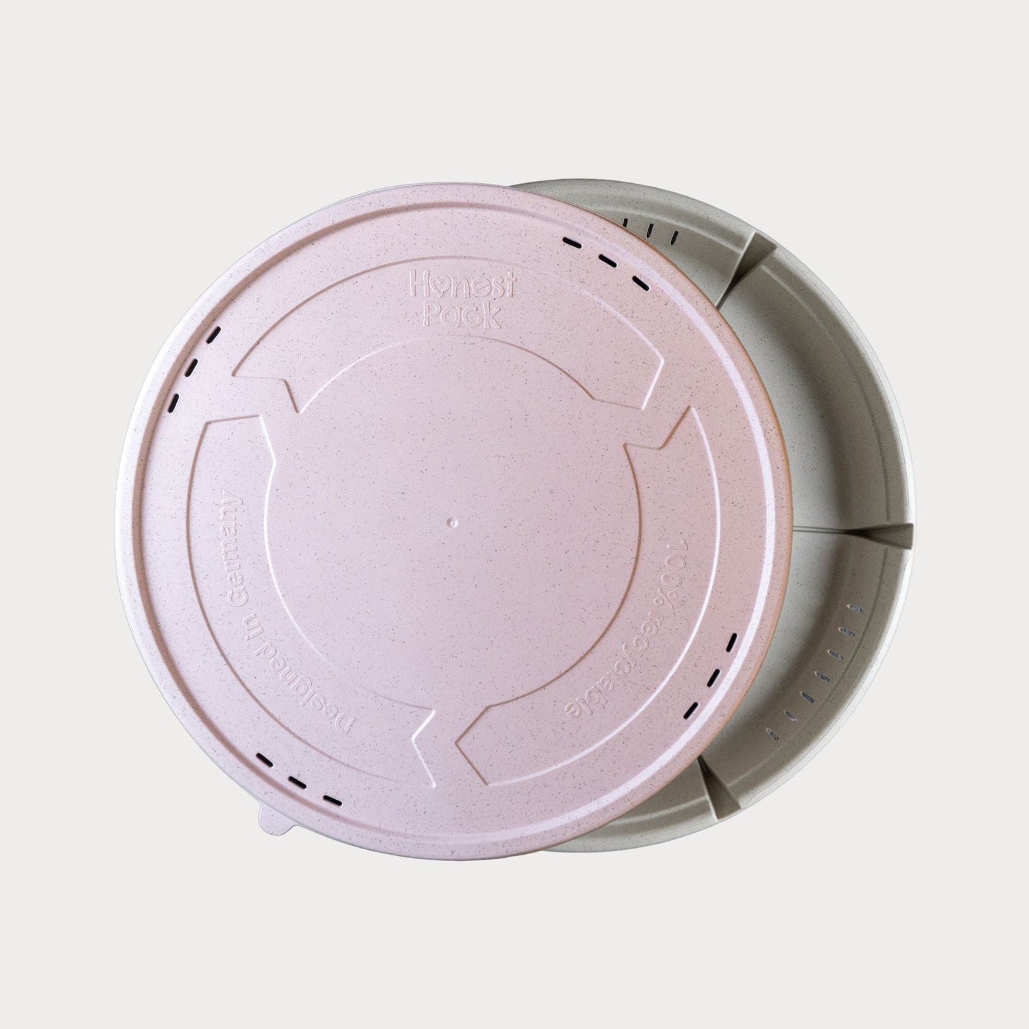 Our pizza box was developed in the kitchen of an innovative specialty pizza chain in Hamburg. Universal size ⌀33 and 3.5 cm in height and lightweight, sturdy, stackable, easy-to-open design make the box convenient for the kitchen, delivery, and ultimately pizza lovers.