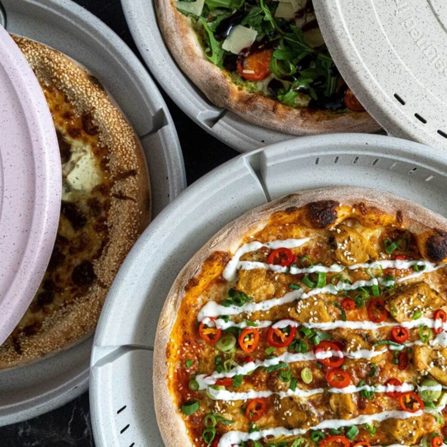 - Best-in-class Pizzabox aus Biopolymer mit 15 % Kaffeehülsen